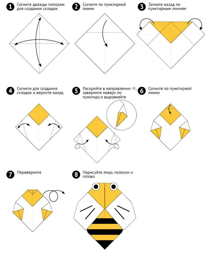 А еще попробуйте сделать вместе пчелок в технике оригами. Ими можно, например, украсить дом к празднику.